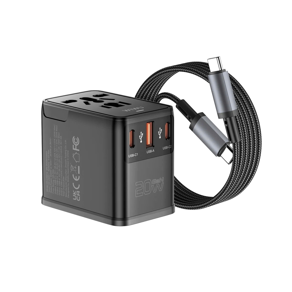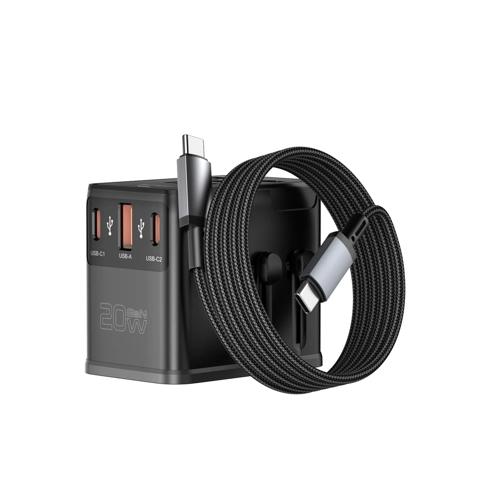 Sạc 4 trong 1: 1 ổ cắm AC + 2 USB-C + 1 USB-A