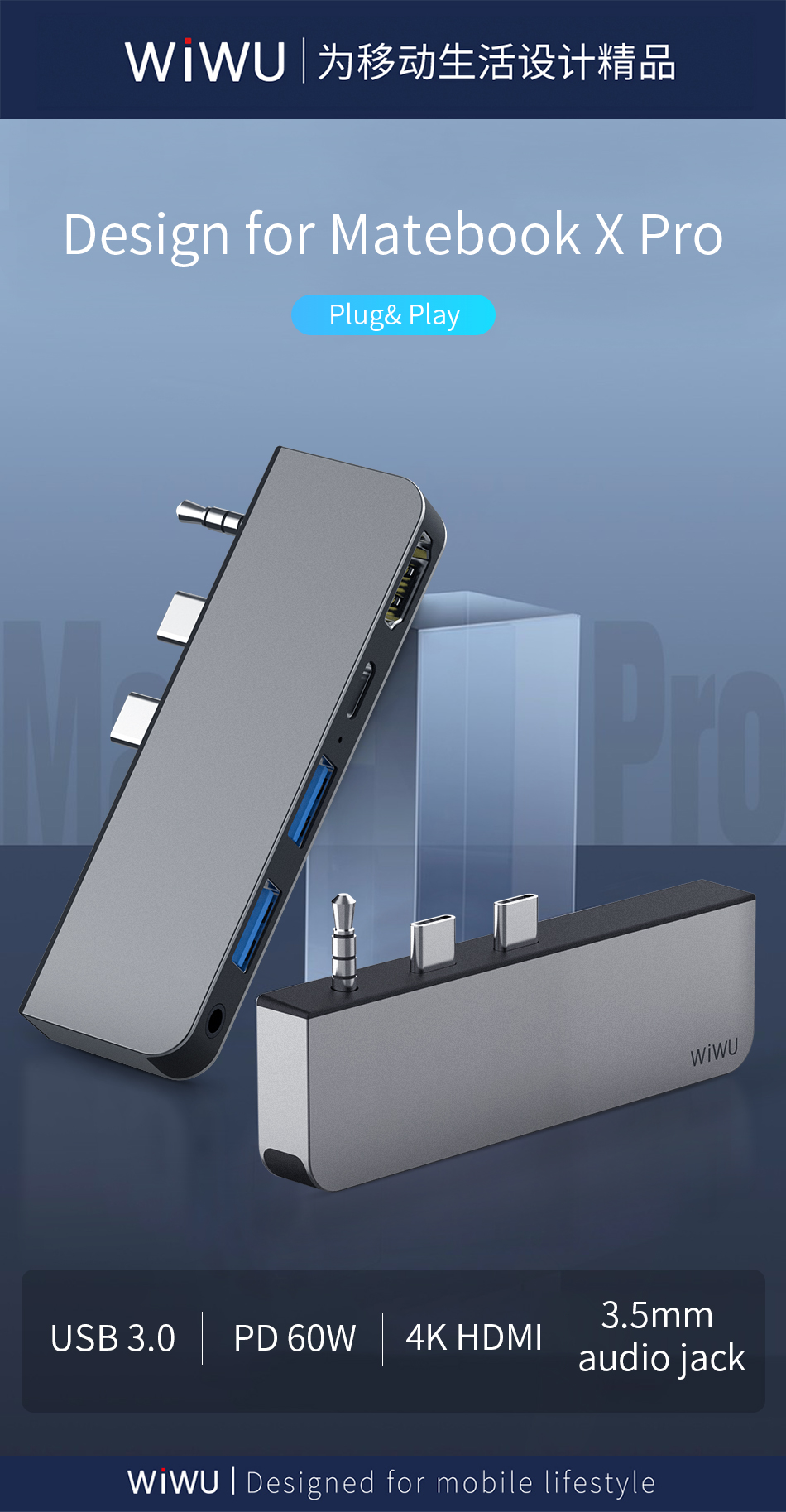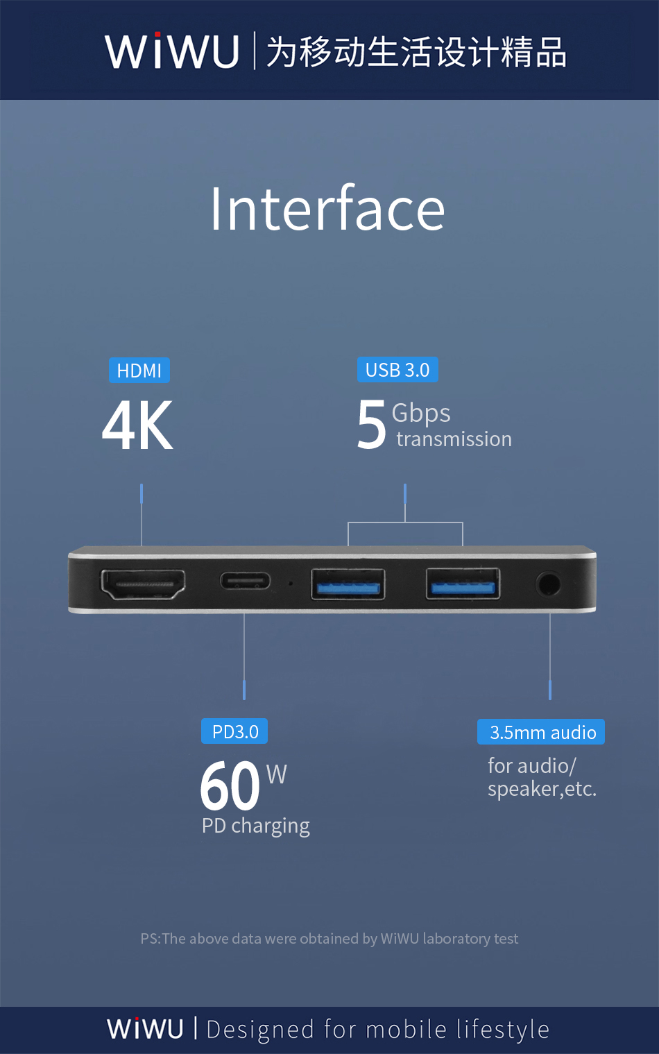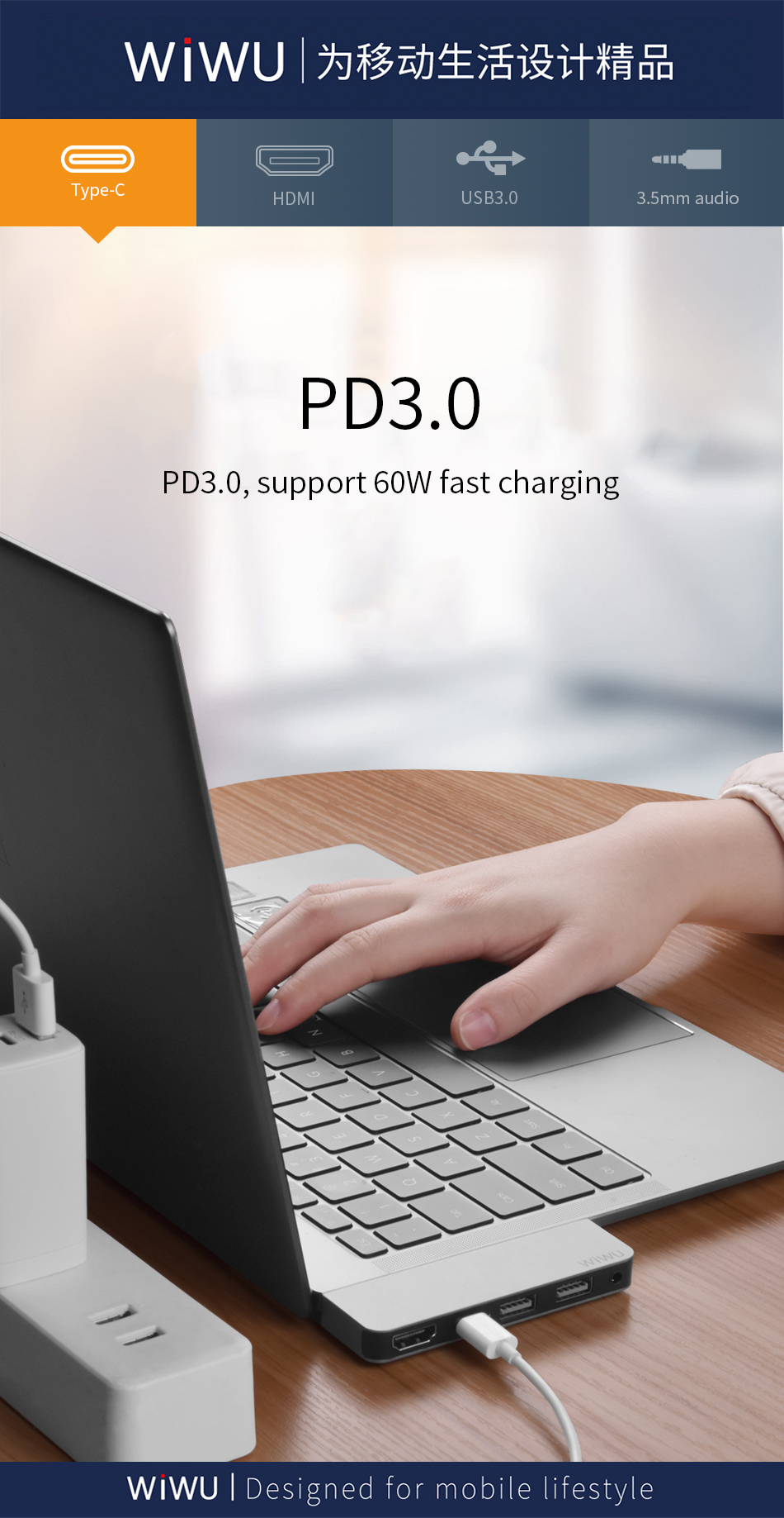 2* USB3.0+ HDMI + PD + 3.5mm Audio |