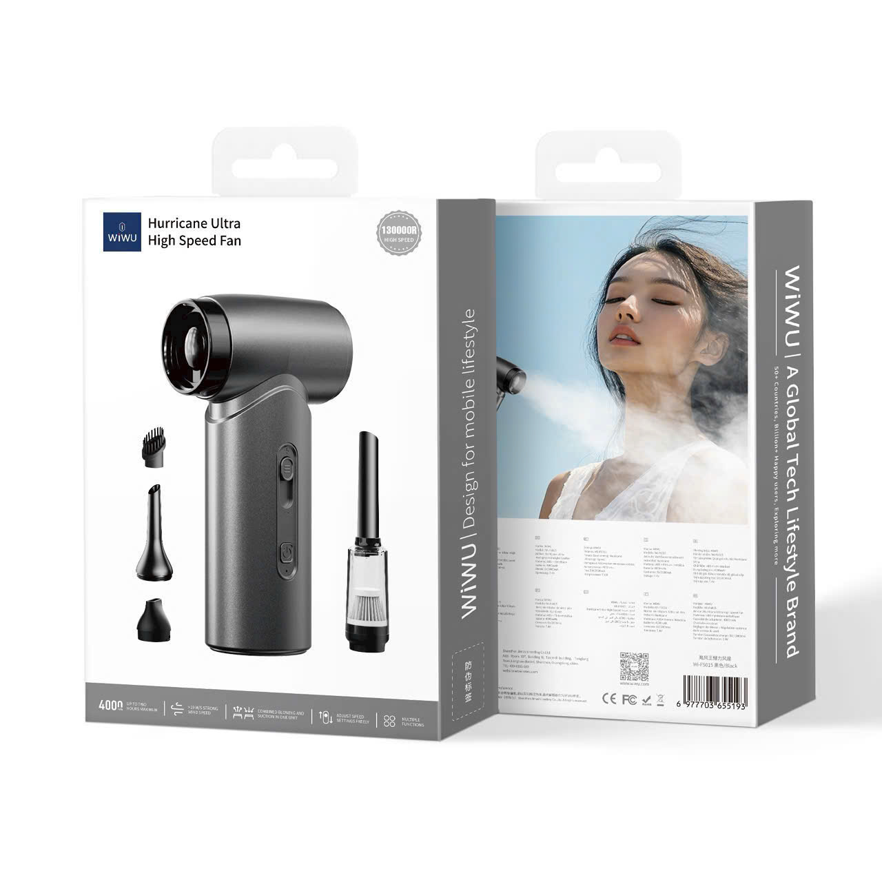 Phụ kiện đi kèm: 5 vòi phun, 1 bàn chải, 1 cáp sạc Type-C